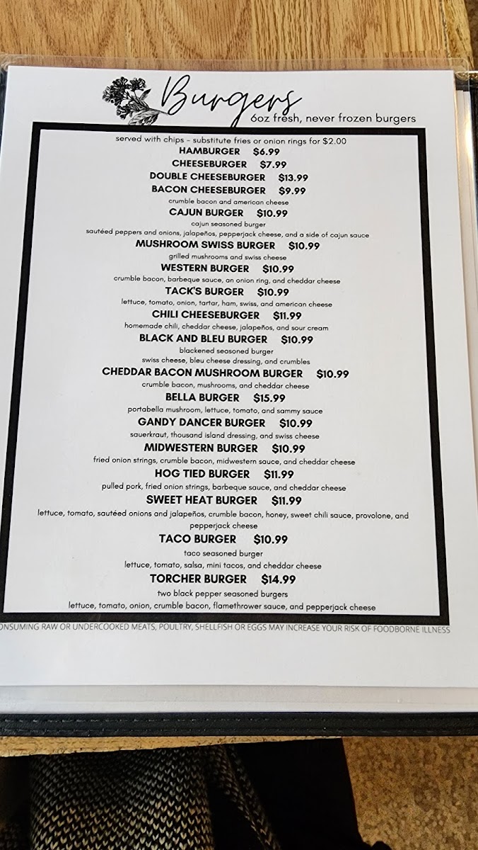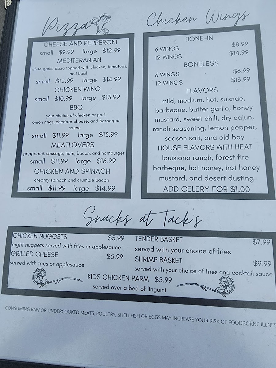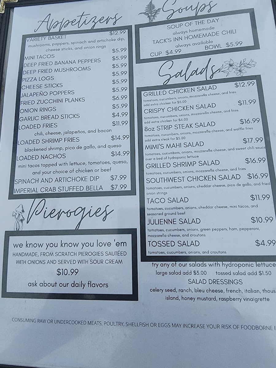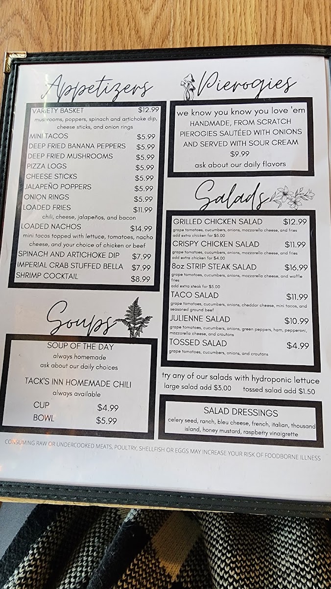 Tack's Inn Menu